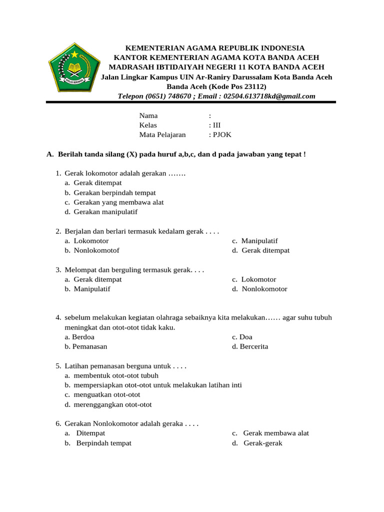- Memperkuat Keterampilan Motorik: Meskipun tidak semua keterampilan motorik dapat diukur melalui soal tertulis, beberapa soal dapat merujuk pada gerakan yang telah dipelajari. Misalnya, soal yang meminta siswa mengidentifikasi cara melakukan gerakan dasar seperti melempar, menangkap, atau melompat.